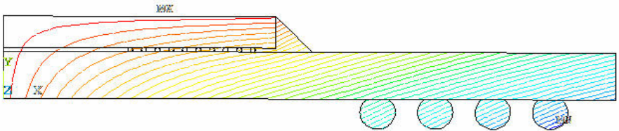 图三(a) FEA预测水平方向变形量(100oC降温到25oC)